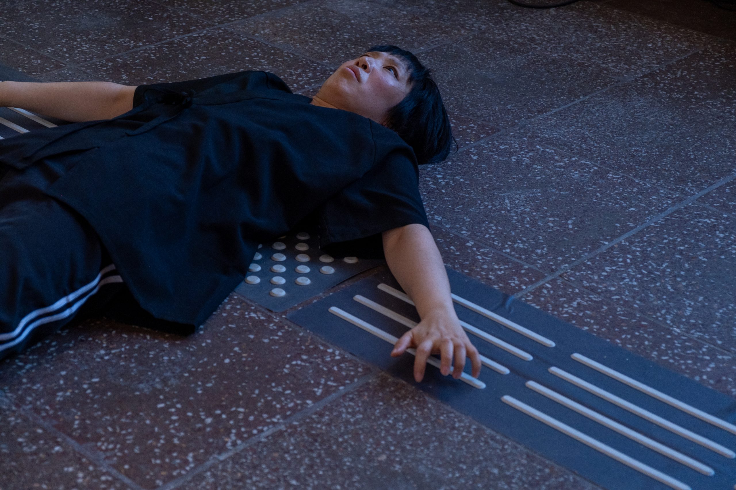 Es gibt einen taktilen Leitsystem auf dem Boden für blinde Besucher*innen.