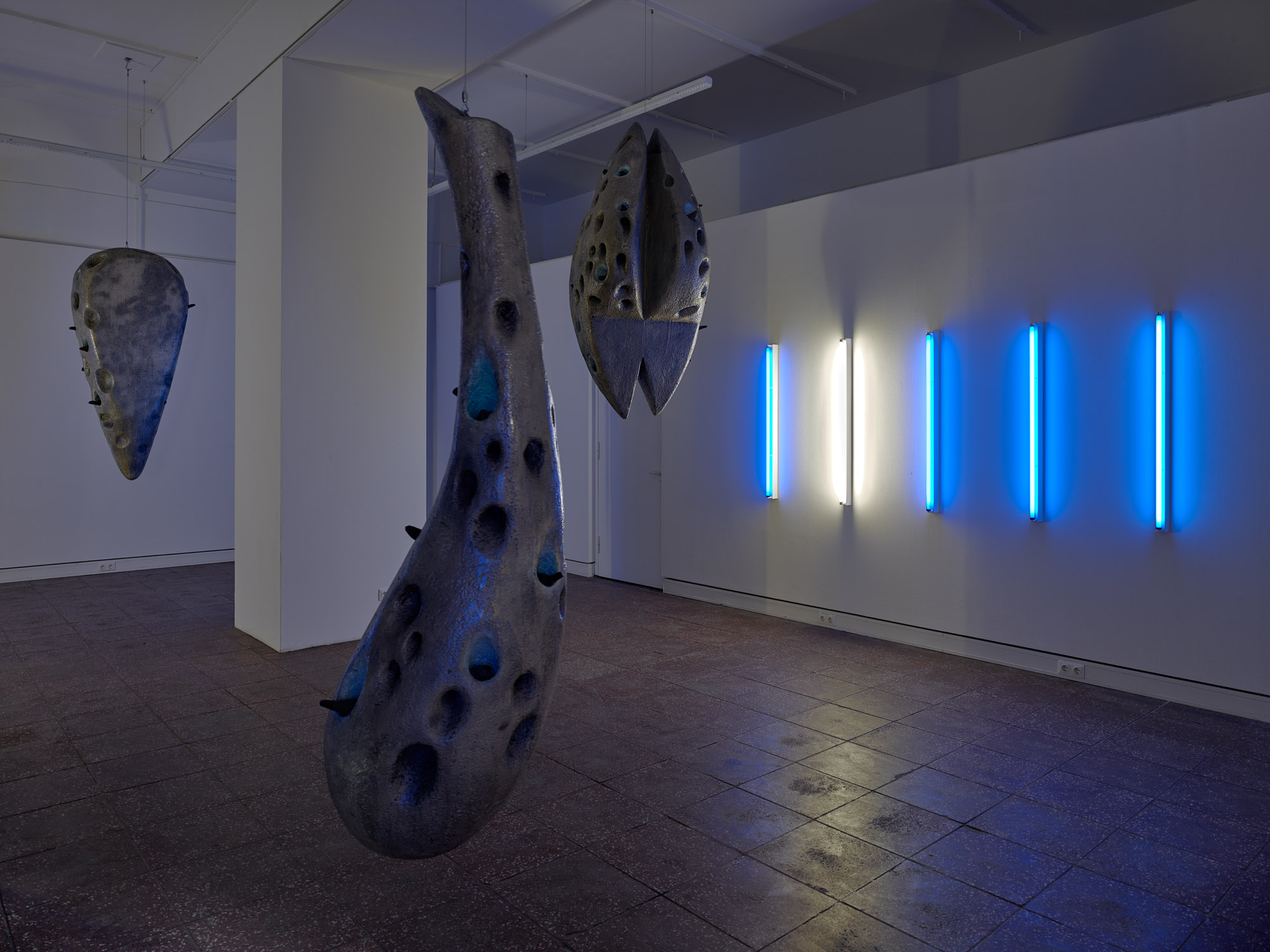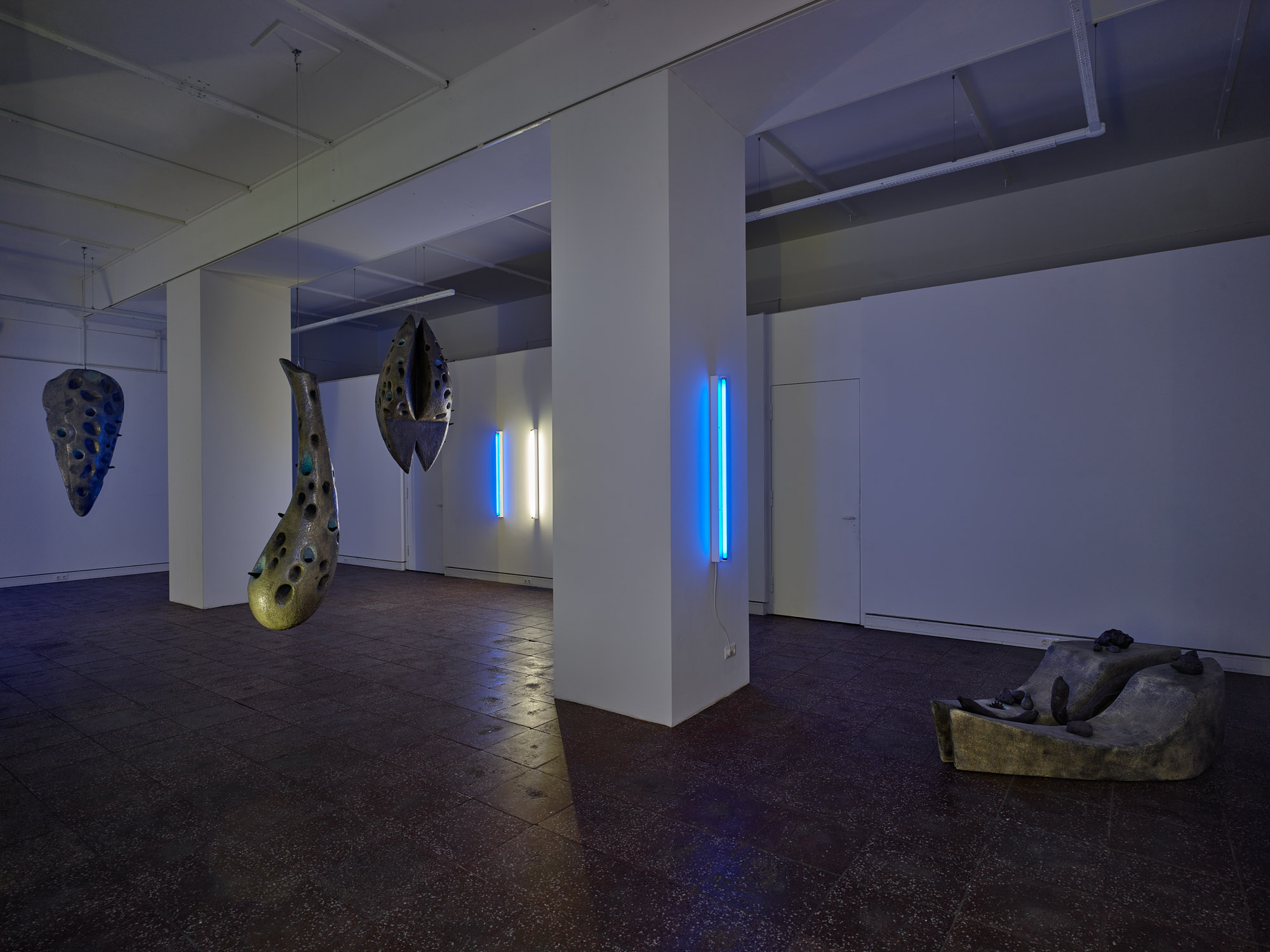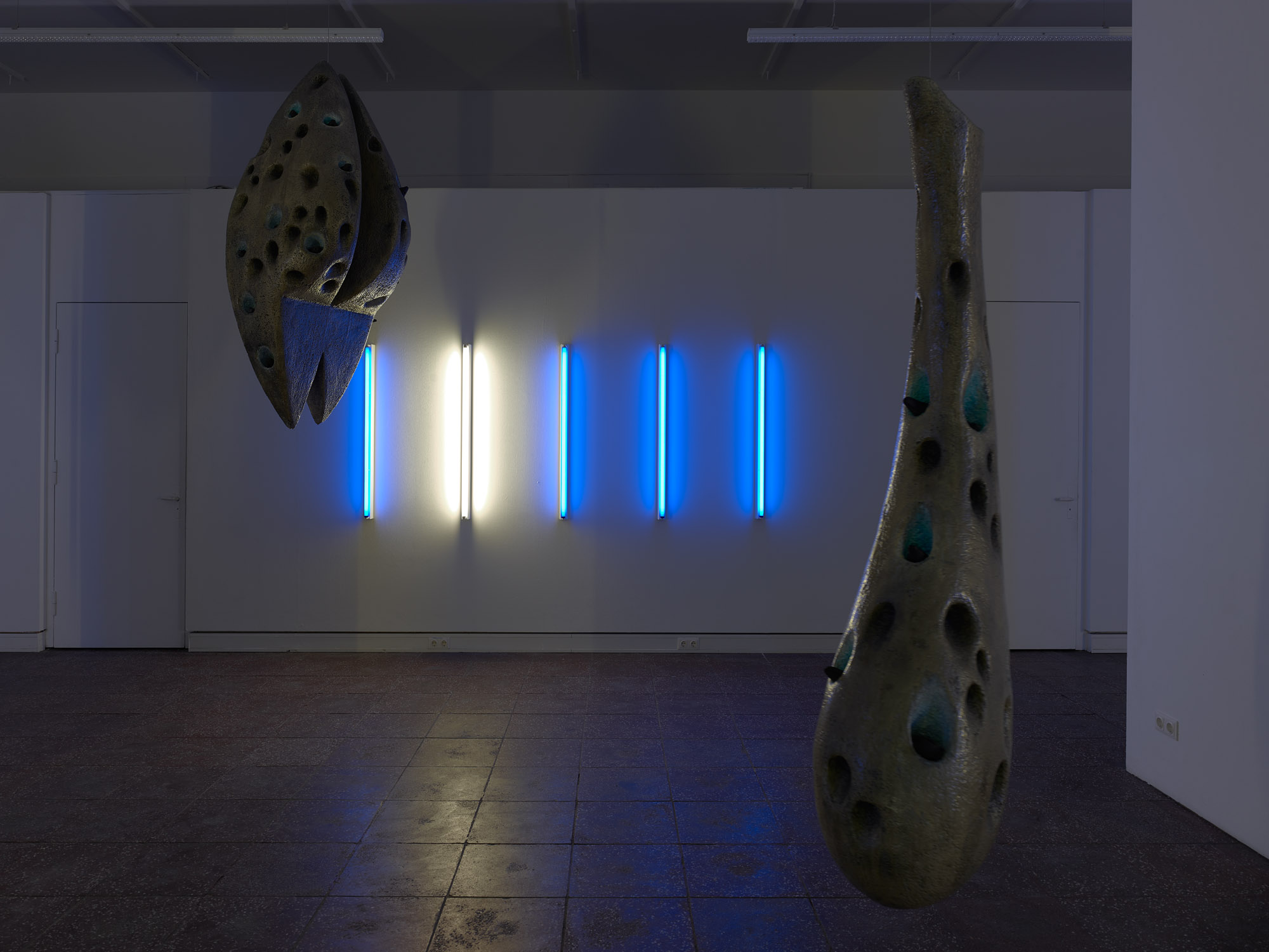Naufus Ramírez-Figueroas mehrteilige Installation Third Lung (2017) steht im Kontext einer Reihe von spiritistischen Séancen, in denen der Künstler mit Seelen ausgestorbener Vogelarten in Verbindung tritt. In Reaktion auf die Laute, die den Teilnehmer*innen vergangener Séancen zu Ohren kamen, ist eine Reihe von tönernen Vogelpfeifen entstanden, die sich für Third Lung mit vier Skulpturen verbinden und in einer Performance aktiviert werden.